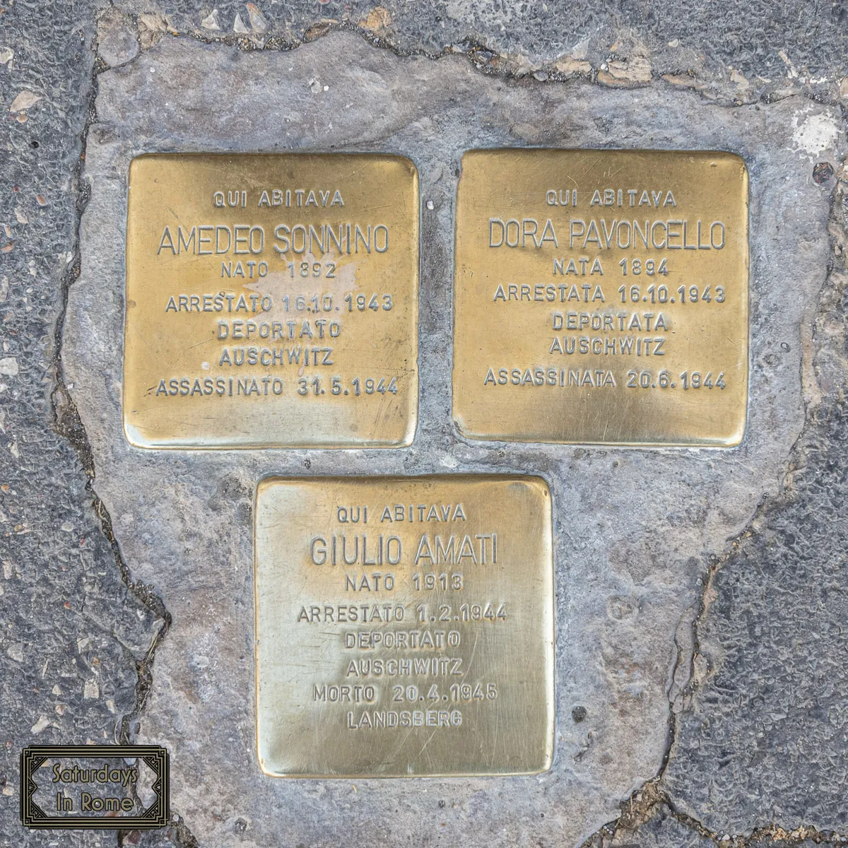 “In Italy, the first Stumbling Stones were laid in Rome in 2010 and are currently found in Bolzano, Genoa, L’Aquila, Livorno, Milan, Reggio Emilia, Siena, Turin, Venice as well as numerous other smaller towns.